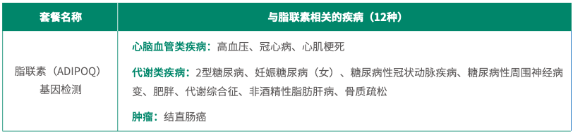 通過檢測脂聯(lián)素基因的兩個位點,評估其對心腦血管類疾病、代謝類疾病、腫瘤等疾病的影響,指導(dǎo)受檢者提早關(guān)注并預(yù)防與脂聯(lián)素相關(guān)的疾病。