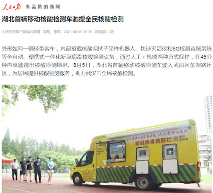 在武漢全員核酸檢測(cè)過(guò)程中,有這樣一抹亮色,馳騁在武漢抗疫前線,它就是博奧晶典新冠病毒核酸檢測(cè)移動(dòng)實(shí)驗(yàn)室。由清華大學(xué)、生物芯片北京國(guó)家工程研究中心和北京博奧晶典生物技術(shù)有限公司共同研發(fā)的新冠病毒核酸檢測(cè)移動(dòng)實(shí)驗(yàn)室是國(guó)內(nèi)首臺(tái)集采集和檢測(cè)為一體的移動(dòng)式新冠病毒檢測(cè)實(shí)驗(yàn)室,同時(shí)也是全國(guó)首款由輕型客車裝載的移動(dòng)實(shí)驗(yàn)室,被鐘南山院士命名為“輕騎兵”。