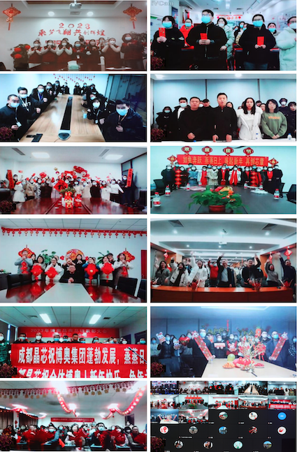 除主會場外,11個分會場的互動大拜年形式多樣、溫暖全場,又帶來了一波小高潮。上海、廣東、福建、內(nèi)蒙、新疆、成都、重慶、鄭州......五湖四海的晶典人在此時此刻齊聚,帶來對博奧晶典最美好的新春祝福。